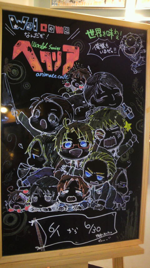 今月はヘタリアとコラボだそうで。テーブルやら壁やらそこかしこにヘタリアのイラストが!店員さんにハンガリーコスのお姉さんが!